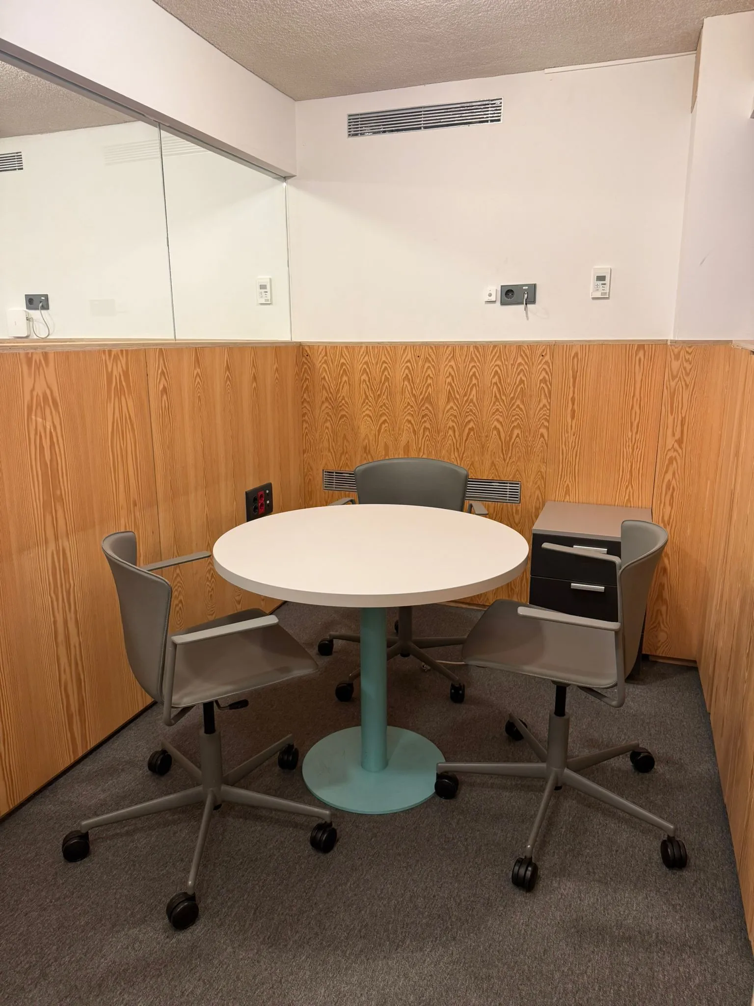 Salas pequeñas, tranquilas pero equipadas con todo lo necesario para la celebración de videollamadas o reuniones tú a tú.